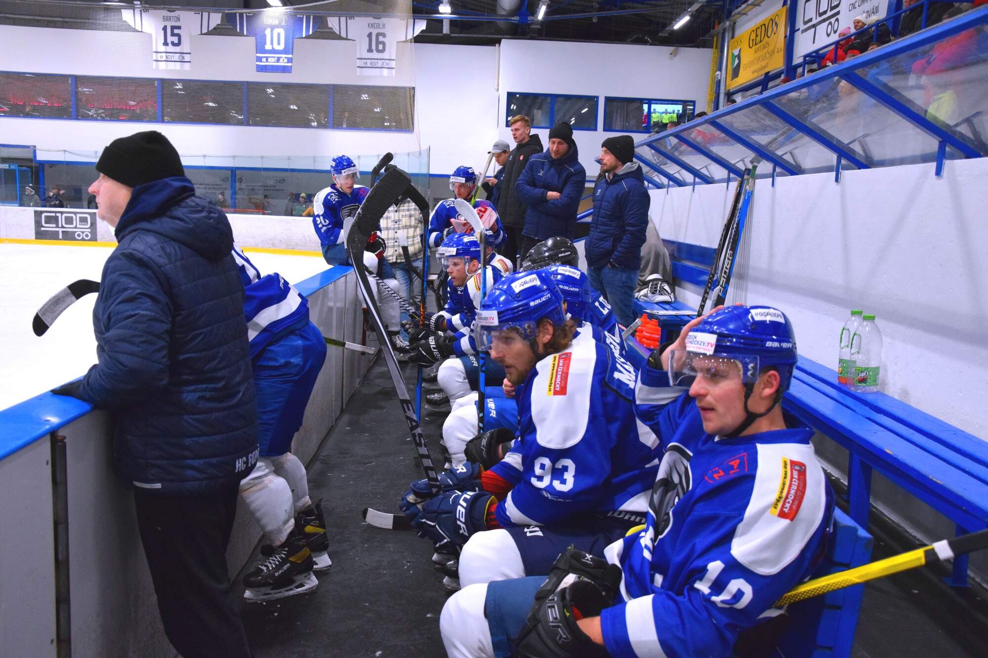 Bobří střídačka při derby s Novým Jičínem. (foto: Bořek Kopecký / hknj.cz)