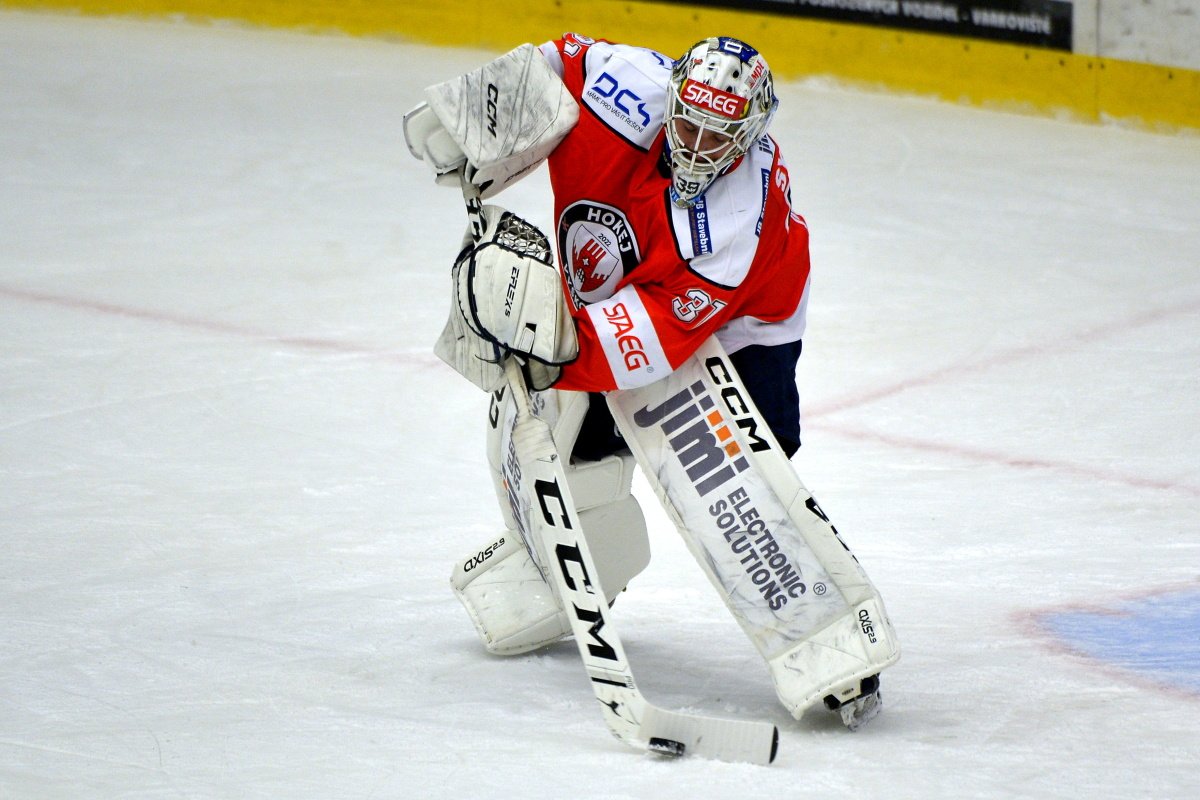 Gólman Tomáš Synek při utkání v Havlíčkově Brodě. (foto: bkhb.cz)