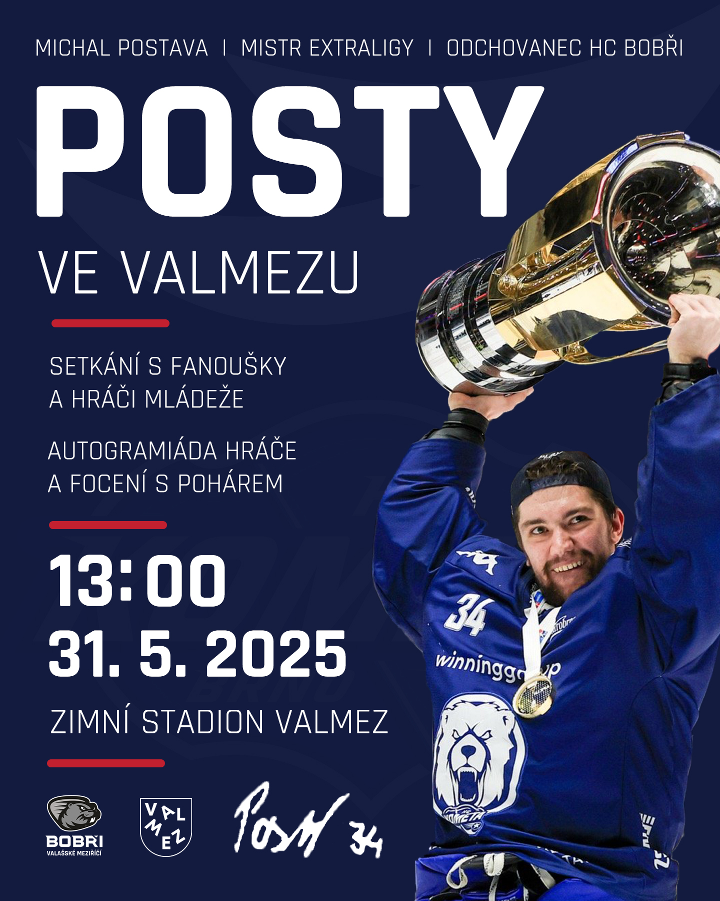 Už v sobotu 31. května zavítá do Valašského Meziříčí mistr extraligy s brněnskou Kometou, odchovanec klubu Michal Postava, který sebou doveze také pohár Tomáše Garrigue Masaryka! V rámci návštěvy se bude konat také podpisová akce pro všechny příznivce klubu!