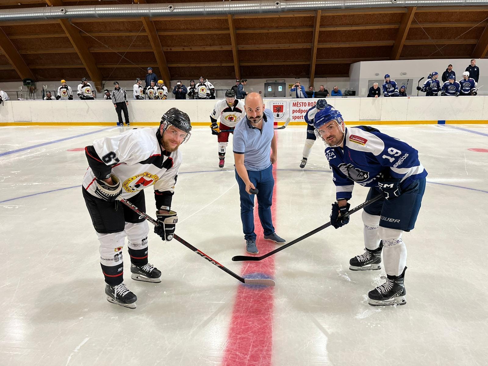 Úvodní buly valašského derby, které se odehrálo po dlouhých 15 letech. (foto: archiv HC Rožnov pod Radhoštěm)
