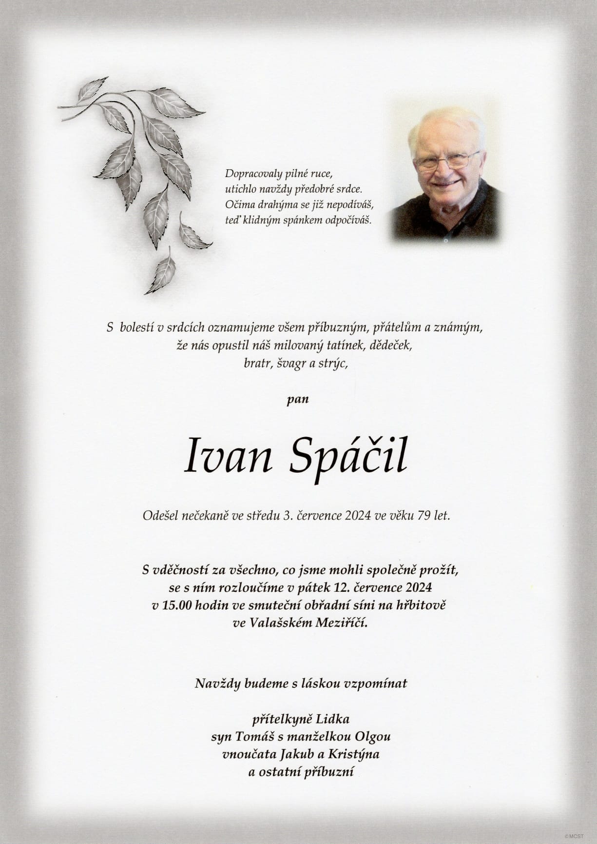 V posledních hodinách jsme se dozvěděli velice smutnou zprávu. Ve věku 79 let zemřel dlouholetý pracovník a strojník zimního stadionu Ivan Spáčil, kterému bychom rádi poděkovali za jeho dlouholetou práci. Za celý klub vyjadřujeme upřímnou soustrast.